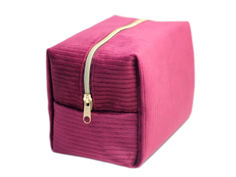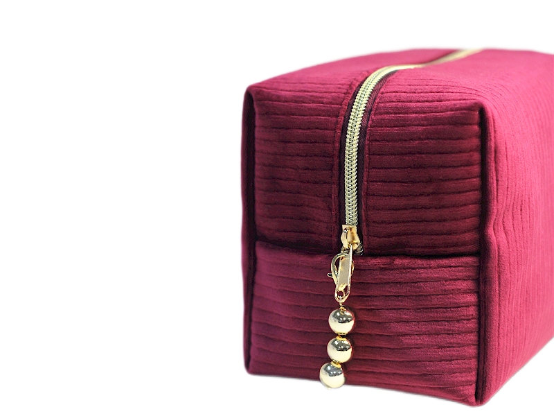 Indulge in the sophistication of soft velvet with this exquisitely crafted makeup bag that transforms everyday beauty storage into a luxury experience. Featuring distinctive striped velvet and premium gold accents, this cosmetic pouch appeals to discerning consumers who appreciate tactile richness and elegant design—perfect for premium beauty brands seeking distinctive promotional packaging.